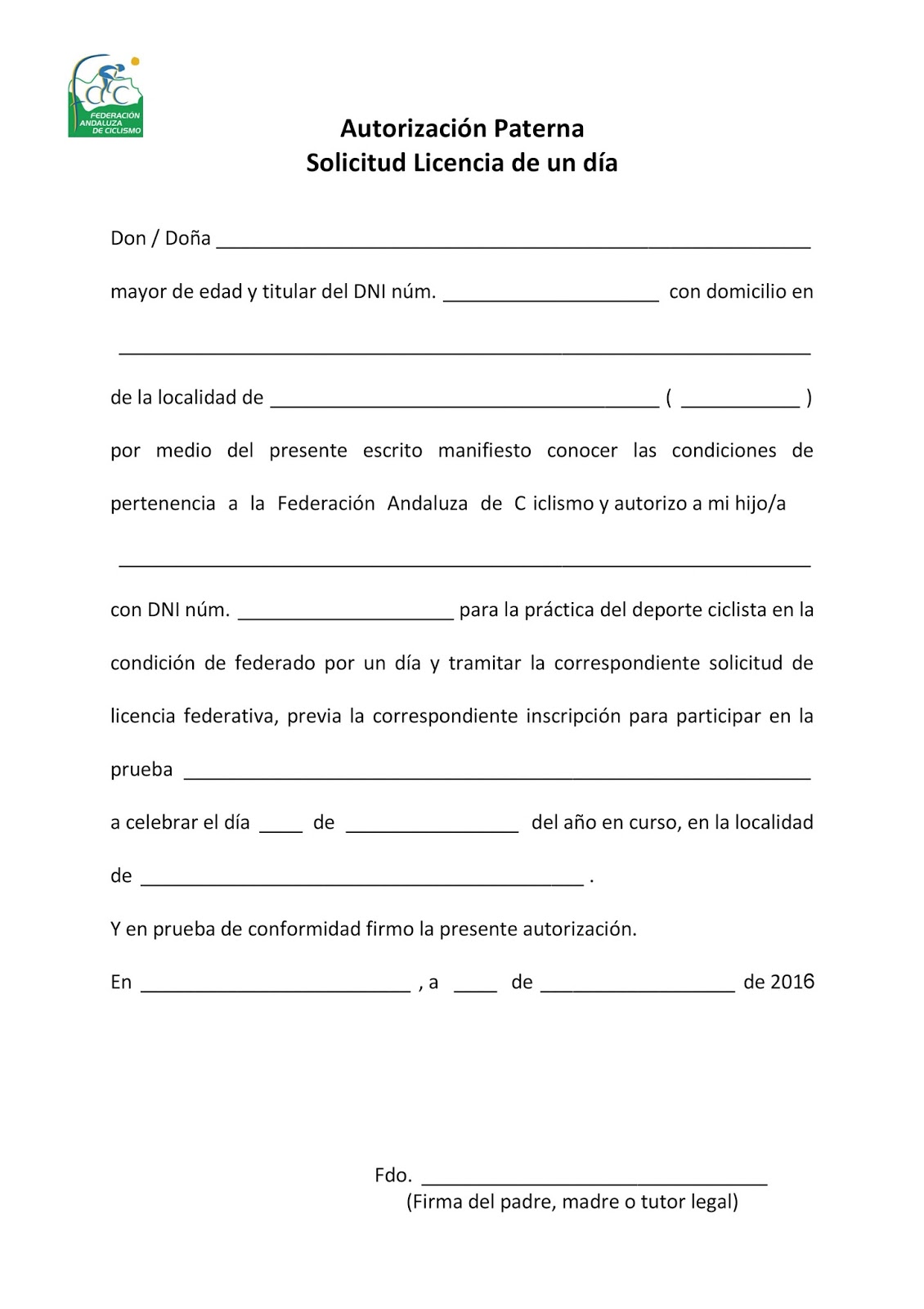 Los menores de 18 años debéis entregar autorización paterna, os adjuntamos modelo a rellenar en caso de que no acudáis acompañados de vuestros padres, si venís acompañados podéis rellenarlo allí mismo pues dispondremos de modelos en blanco. (VER ABAJO)